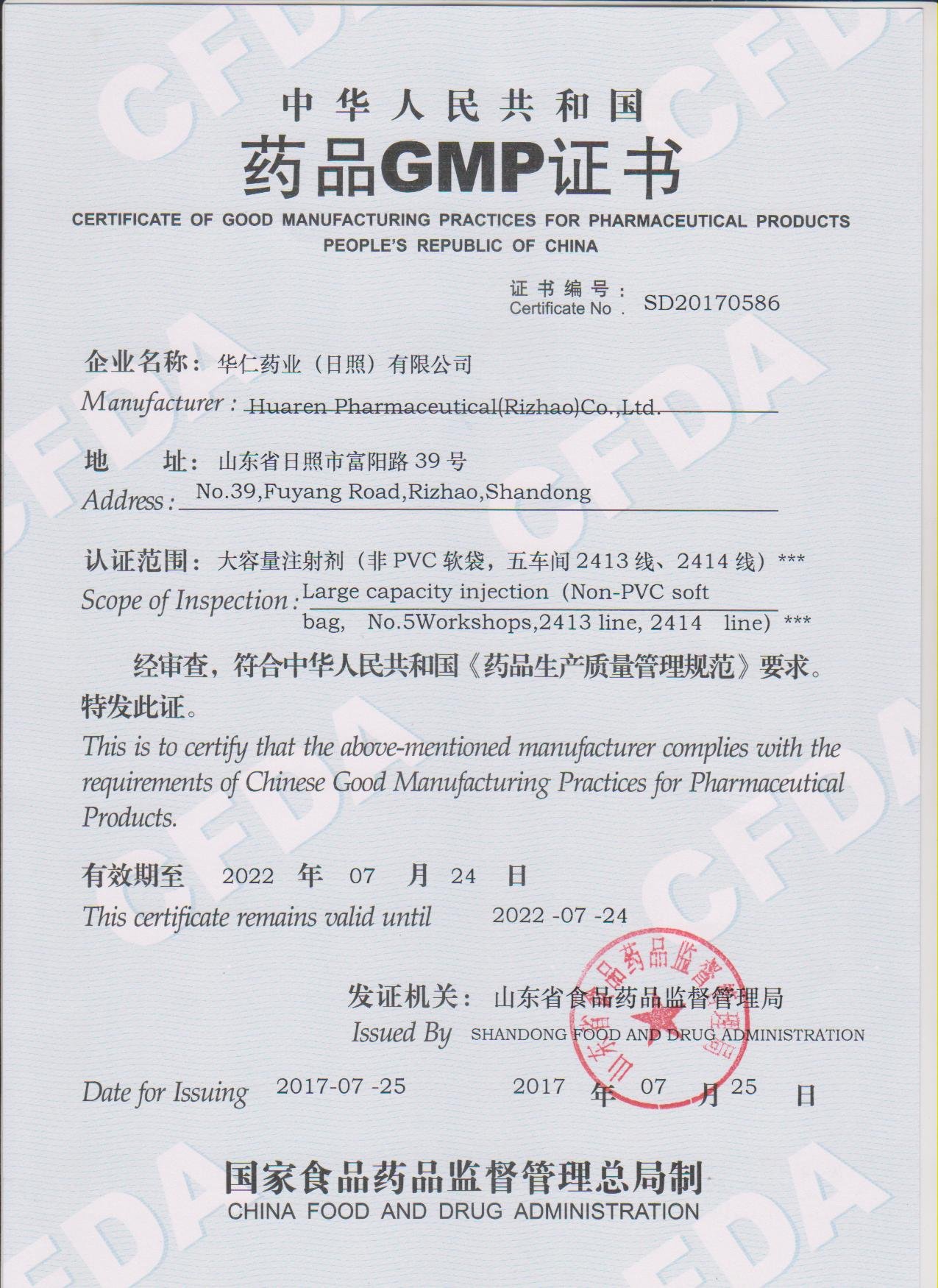 近日,日照免费a片顺利取得五车间GMP证书。