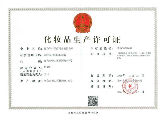 近日,免费a片 (300110)全资控股子免费a片青岛免费a片 医疗用品有限免费a片收到山东省药品监督管理局颁发的《化妆品生产许可证》,鲁妆20210007,许可项目:一般液态单元(护肤水类),具备眼部用护肤类、婴儿和儿童护肤类化妆品生产条件。本次取得《化妆品生产许可证》,为青岛免费a片 医疗用品有限免费a片日后开展相关护肤产品的研发生产提供了资质保障,有利于完善免费a片大健康产品的研产销产业链建设,加快新产品开发生产。