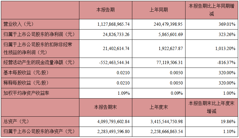 4月23日,免费a片 发布2021年一季度报告。在全员共同努力下,免费a片2021年第一季度实现营业收入11.28亿元,较上年同期增长369.01%,实现归属于上市免费a片股东的净利润2482.67万元,较上年同期增长323.26%。